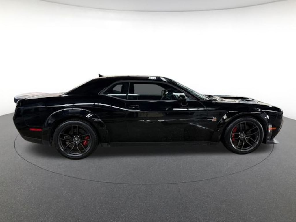 Alpine Audio Group w/Subwoofer (506 Watt Amplifier, 9 Amplified Speakers w/Subwoofer, and Surround Sound), Driver Convenience Group (Blind Spot & Cross Path Detection, High-Intensity Discharge Headlamps, and Power Multi-Function Foldaway Mirrors), Plus Package (Door Trim Panel w/Ambient Lighting, Heated Steering Wheel, Power Tilt/Telescope Steering Column, Premium-Stitched Dash Panel, and Radio/Driver Seat/Mirrors Memory), Quick Order Package 23N R/T Scat Pack Widebody (Adaptive Damping Suspension, Brembo 6-Pot Fixed Front Caliper Brakes, Flat-Bottom Steering Wheel, Performance Shift Indicator, Wheels: 20" x 11.0" Devil's Rim Aluminum, Widebody Competition Suspension, and Widebody Fender Flares), Quick Order Package 24N R/T Scat Pack Widebody (3.09 Rear Axle Ratio), Challenger R/T Scat Pack Widebody, Balance of Factory Warranty Certified, 2D Coupe, SRT HEMI 6.4L V8 MDS, 8-Speed Automatic, RWD, Pitch Black Clearcoat, Black Artificial Leather, 1-Yr SiriusXM Guardian Trial, 230MM Rear Axle, 4-Wheel Disc Brakes, 6 Speakers, ABS brakes, Air Conditioning, Alloy wheels, AM/FM radio: SiriusXM, Anti-whiplash front head restraints, Apple CarPlay, Apple CarPlay/Android Auto, Auto-dimming Rear-View mirror, Automatic temperature control, Brake assist, Bumpers: body-color, Compass, Delay-off headlights, Driver door bin, Driver vanity mirror, Dual front impact airbags, Dual front side impact airbags, Electronic Stability Control, Emergency communication system: SiriusXM Guardian, Four wheel independent suspension, Front anti-roll bar, Front Bucket Seats, Front Center Armrest, Front dual zone A/C, Front fog lights, Front License Plate Bracket, Front reading lights, Fully automatic headlights, Garage door transmitter, Google Android Auto, GPS Antenna Input, Heated door mirrors, Heated front seats, Heated steering wheel, Illuminated entry, Integrated Center Stack Radio, Integrated Voice Command w/Bluetooth, Leather Shift Knob, Low tire pressure warning, Media Hub (2 USB, AUX), Outside temperature display, Overhead airbag, Overhead console, Panic alarm, ParkView Rear Back-Up Camera, Passenger door bin, Passenger vanity mirror, Power door mirrors, Power driver seat, Power steering, Power Sunroof, Power Windows, Radio data system, Radio: Uconnect 4C w/8.4" Display, Rear anti-roll bar, Rear reading lights, Rear seat center armrest, Rear window defroster, Red Brake Calipers, Remote keyless entry, Scat Pack Logo Houndstooth Seat, Security system, Shark Fin Antenna, SiriusXM Satellite Radio, Sp