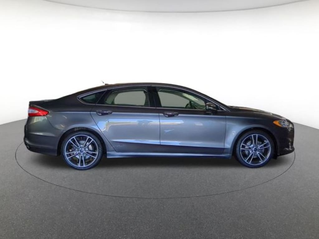 Equipment Group 300A, Fusion Titanium, 30 day Warranty, 4D Sedan, EcoBoost 2.0L I4 GTDi DOHC Turbocharged VCT, 6-Speed Automatic, FWD, Magnetic, Black Leather, **MEMORY SEATS**, **REMOTE KEYLESS ENTRY**, 12 Speakers, 18" Premium Polished Aluminum Wheels, 19" H-Spoke Dark Stainless Aluminum Wheels, 4-Wheel Disc Brakes, ABS brakes, Air Conditioning, Alloy wheels, AM/FM radio: SiriusXM, Auto-dimming door mirrors, Auto-dimming Rear-View mirror, Automatic temperature control, Brake assist, Bumpers: body-color, CD player, Compass, Cooled Driver and Passenger Seats, Delay-off headlights, Driver door bin, Driver vanity mirror, Dual front impact airbags, Dual front side impact airbags, Electronic Stability Control, Emergency communication system: 911 Assist, Exterior Parking Camera Rear, Four wheel independent suspension, Front anti-roll bar, Front Bucket Seats, Front Center Armrest, Front dual zone A/C, Front fog lights, Front License Plate Bracket, Front reading lights, Fully automatic headlights, Heated door mirrors, Heated front seats, Heated Steering Wheel, Illuminated entry, Knee airbag, Leather Shift Knob, Leather-Trimmed Heated Sport Bucket Seats, Low tire pressure warning, Occupant sensing airbag, Outside temperature display, Overhead airbag, Overhead console, Panic alarm, Passenger door bin, Passenger vanity mirror, Power door mirrors, Power driver seat, Power Moonroof, Power passenger seat, Power steering, Power windows, Radio data system, Radio: AM/FM Stereo/MP3/Single-CD, Rear anti-roll bar, Rear Parking Sensors, Rear reading lights, Rear seat center armrest, Rear window defroster, Security system, SiriusXM Radio, Speed control, Speed-sensing steering, Speed-Sensitive Wipers, Split folding rear seat, Spoiler, Steering wheel mounted audio controls, SYNC w/MyFord Touch, Tachometer, Telescoping steering wheel, Tilt steering wheel, Traction control, Trip computer, Turn signal indicator mirrors, Universal Garage Door Opener, Variably intermittent wipers, and Voice-Activated Navigation.