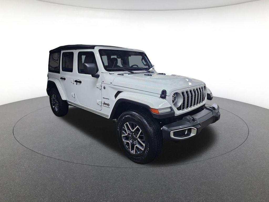 Quick Order Package 24G Sahara, Technology Group (12.3" Touchscreen Display, 4G LTE Wi-Fi Hot Spot, Alpine Premium Audio System, Apple CarPlay, Auto-Dimming Rear-View Mirror, Connected Travel & Traffic Services, Connectivity - US/Canada, Disassociated Touchscreen Display, Google Android Auto, GPS Navigation, HD Radio, Integrated Center Stack Radio, Integrated Off-Road Camera, Integrated Voice Command w/Bluetooth, Radio: Uconnect 5 Nav w/12.3" Display, SiriusXM Radio Service, SiriusXM w/360L, and Universal Garage Door Opener), Balance of Factory Warranty, 110 MPH Vehicle Max Speed Calibration, 3.45 Overall Top Gear Ratio, 4-Wheel Disc Brakes, 8 Speakers, ABS brakes, Air Conditioning, Alloy wheels, AM/FM radio: SiriusXM, Apple CarPlay/Android Auto, Automatic temperature control, Aux Battery, Brake assist, Cloth Low-Back Bucket Seats, Compass, Delay-off headlights, Driver door bin, Driver vanity mirror, Dual front impact airbags, Dual front side impact airbags, Electronic Stability Control, Emergency communication system: Jeep Connect, Front anti-roll bar, Front Bucket Seats, Front Center Armrest w/Storage, Front dual zone A/C, Front fog lights, Front License Plate Bracket, Front reading lights, Fully automatic headlights, Heated door mirrors, Heated front seats, Heated steering wheel, Heavy Duty Suspension w/Gas Shocks, Illuminated entry, Integrated roll-over protection, Jeep Trail Rated Kit, Low tire pressure warning, MOPAR All-Weather Floor Mats, Non-Lock Fuel Cap w/o Discriminator, Occupant sensing airbag, Outside temperature display, Overhead airbag, Panic alarm, ParkView Rear Back-Up Camera, Passenger door bin, Passenger vanity mirror, Power door mirrors, Power steering, Power windows, Radio data system, Radio: Uconnect 5 w/12.3" Display, Rear anti-roll bar, Rear reading lights, Remote keyless entry, Security system, Speed control, Split folding rear seat, Steering wheel mounted audio controls, Stop-Start Dual Battery System, Tachometer, Telescoping steering wheel, Tilt steering wheel, Traction control, Trip computer, Variably intermittent wipers, Voltmeter, and Wheels: 18" x 7.5" Machine/Painted Gray.
